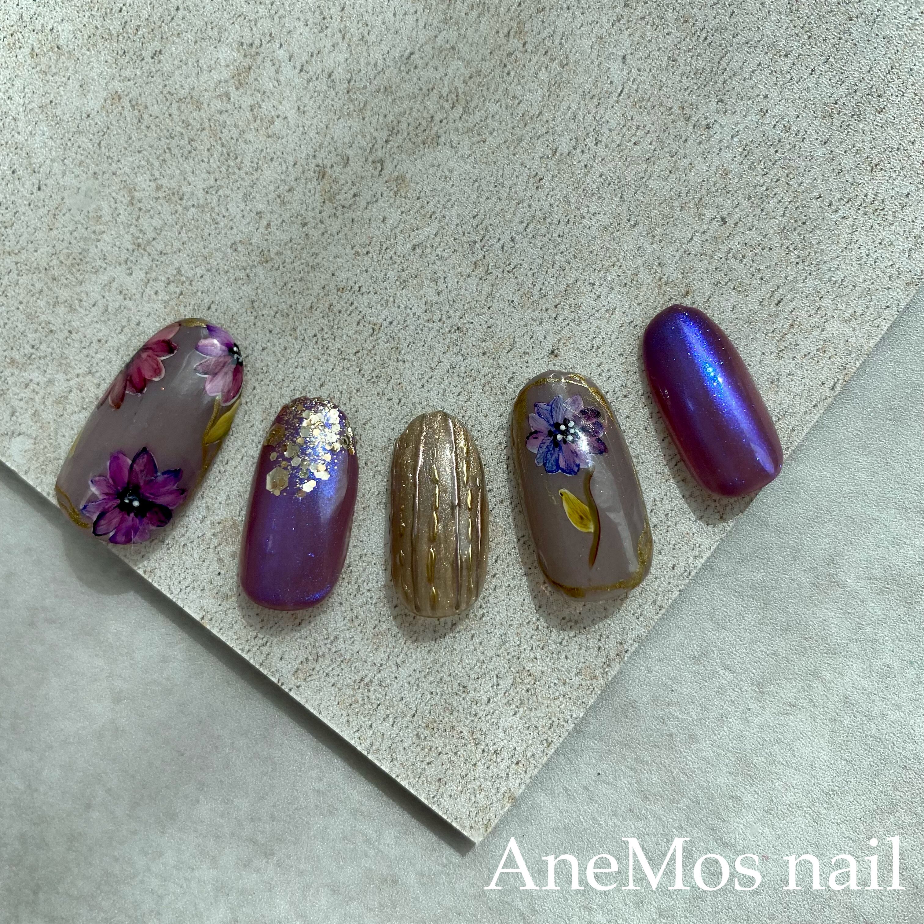 パープルボタニカルネイル